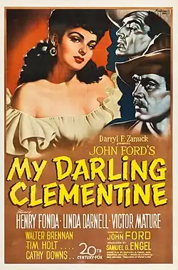 My Darling Clementine is a 1946 American Western film directed by John Ford and starring Henry Fonda as Wyatt Earp during the period leading up to the gunfight at the O.K. Corral. The ensemble cast also features Victor Mature (as Doc Holliday), Linda Darnell, Walter Brennan, Tim Holt, Cathy Downs and Ward Bond.