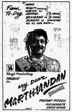 My Dear Marthandan is a 1990 Indian Tamil-language film directed by Pratap Pothen and produced by Sivaji Productions, starring Prabhu and Khushbu. It is loosely based on the 1988 American film Coming to America.[1] It was later remade into telugu as "Raja Vikramarka" starring chiranjeevi. [2] The film was released on 24 August 1990.