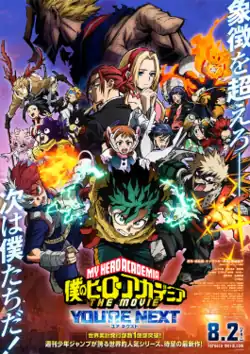 My Hero Academia: You're Next (Japanese: 僕のヒーローアカデミア THE MOVIE ユア ネクスト, Hepburn: Boku no Hīrō Akademia za Mūbī Yuā Nekusuto) is a 2024 Japanese animated superhero film based on an original story featuring the characters of My Hero Academia manga series by Kōhei Horikoshi. Produced by Bones and distributed by Toho, the film is directed by Tensai Okamura from a script written by Yōsuke Kuroda and features an ensemble cast that includes Daiki Yamashita, Nobuhiko Okamoto, Yuki Kaji, Ayane Sakura, and Kaito Ishikawa. In the film, taking place after the U.A. Traitor arc of the manga, Izuku Midoriya faces a villain who tries to imitate the hero that Izuku has long admired the most.
