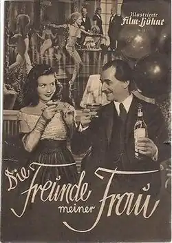 My Wife's Friends (German: Die Freunde meiner Frau) is a 1949 West German comedy film directed by Hans Deppe and starring Sonja Ziemann, Grethe Weiser and Gerda Maurus.[1] It was made by Real Film at the Wandsbek Studios in Hamburg. The film's sets were designed by the art directors Herbert Kirchhoff and Mathias Matthies.