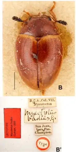 - ^ Pecci-Maddalena, Italo Salvatore de Castro; Lopes-Andrade, Cristiano; Skelley, Paul (2023-06-28). "Catalogue of Mycotretus Lacordaire, 1842 (Coleoptera: Erotylidae: Tritomini): an annotated, illustrated and historical approach". European Journal of Taxonomy. 876: 1–182. doi:10.5852/ejt.2023.876.2149. ISSN 2118-9773.