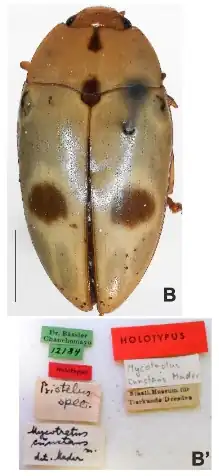 - ^ Pecci-Maddalena, Italo Salvatore de Castro; Lopes-Andrade, Cristiano; Skelley, Paul (2023-06-28). "Catalogue of Mycotretus Lacordaire, 1842 (Coleoptera: Erotylidae: Tritomini): an annotated, illustrated and historical approach". European Journal of Taxonomy. 876: 1–182. doi:10.5852/ejt.2023.876.2149. ISSN 2118-9773.