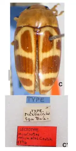 - ^ Pecci-Maddalena, Italo Salvatore de Castro; Lopes-Andrade, Cristiano; Skelley, Paul (2023-06-28). "Catalogue of Mycotretus Lacordaire, 1842 (Coleoptera: Erotylidae: Tritomini): an annotated, illustrated and historical approach". European Journal of Taxonomy. 876: 1–182. doi:10.5852/ejt.2023.876.2149. ISSN 2118-9773.