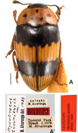 - ^ Pecci-Maddalena, Italo Salvatore de Castro; Lopes-Andrade, Cristiano; Skelley, Paul (2023-06-28). "Catalogue of Mycotretus Lacordaire, 1842 (Coleoptera: Erotylidae: Tritomini): an annotated, illustrated and historical approach". European Journal of Taxonomy. 876: 1–182. doi:10.5852/ejt.2023.876.2149. ISSN 2118-9773.