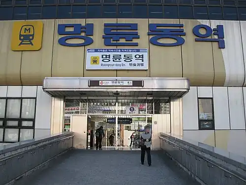 Myeongnyun Station (Korean: 명륜역; Hanja: 明倫驛) is a station of Busan Metro Line 1 in Myeongnyun-dong, Dongnae District, Busan, South Korea.
