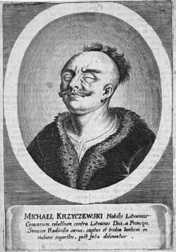 Mykhailo Krychevsky or Stanisław Krzyczewski or Krzeczowski (died 3 August 1649) was a Polish noble, military officer and Cossack commander. He fought for the Polish–Lithuanian Commonwealth against various Cossack revolts and Crimean Tatar factions. During his time as a Cossack commander, Krychevsky befriended Bohdan Khmelnytsky, who would go on to stage a revolt against the Polish-Lithuanian throne.