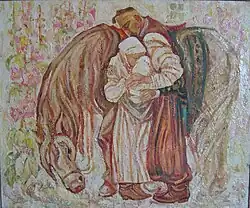 He transformed the Socialist realism artistic manner he was taught through a Ukrainian academic romanticism and historicism, rare at that time of Soviet censorship and pressure, to a new folk artistic style.