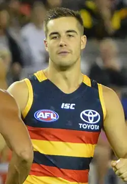 Myles Poholke (born 10 July 1998) is a former professional Australian rules footballer last playing for the Adelaide Football Club in the Australian Football League (AFL). He was drafted by Adelaide with their second selection and 44th overall in the 2016 national draft.[1] He made his debut in the 10-point victory against Sydney at the Sydney Cricket Ground (SCG) in round five of the 2018 season.[2][3]