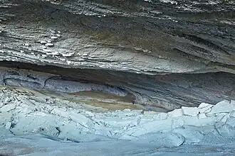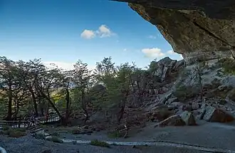 Diverse elements of human habitation are found[4] at Cueva del Milodón including fire-fractured rock, lithic tools and human remains. Human habitation at Cueva del Milodón is dated as early as 6000 BC.[5]