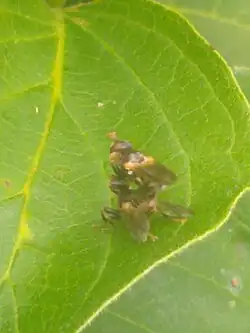 | Myopa vesiculosa pair mating | |
