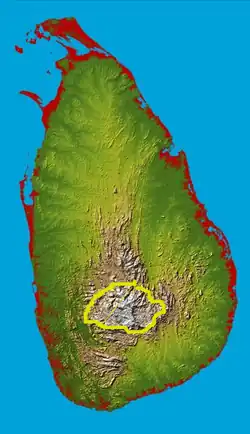 | yellow — boundary of range in the highlands | |