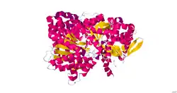 Myophosphorylase or glycogen phosphorylase, muscle associated (PYGM) is the muscle isoform of the enzyme glycogen phosphorylase and is encoded by the PYGM gene. This enzyme helps break down glycogen (a form of stored carbohydrate) into glucose-1-phosphate (not glucose), so it can be used within the muscle cell. Mutations in this gene are associated with McArdle disease (GSD-V, myophosphorylase deficiency), a glycogen storage disease of muscle.[2]