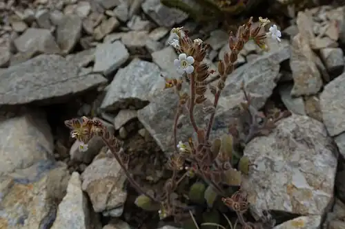 Myosotis australis is morphologically most similar to other ebracteate-erect species from New Zealand, especially Myosotis saxatilis.[5] Several morphological characters can be used to distinguish M. australis from M. saxatilis. The partially bracteate, distally non-bifurcating inflorescence in M. australis can help distinguish it from the obviously bifurcating, ebracteate inflorescence of M. saxatilis.[5] In addition, M. australis has long internodes (>10 mm) between fruits at fruiting, whereas M. saxatilis has short internodes (<12 mm).[5]