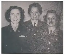 During World War II, Bachelder enlisted in the Women's Army Corps (WAC) in November 1942, at the Springfield, Massachusetts, headquarters. After spending time in training at military bases in several U.S. states, she received orders assigning her to the Company 'D' WAC Detachment of the Manhattan District, United States Army Corps of Engineers. Her secret assignment was to lead a group of 15 to 20 women from the WAC, stationed in Des Moines, Iowa, to Fort Sill, Oklahoma, and from there to Santa Fe, New Mexico. She and the women under her command arrived at Los Alamos, New Mexico, on October 21, 1943.[1][4] Bachelder however reported to one more woman named Helen E. Mulvihill.[5] Bachelder and the other women lived in a dorm.[6][7]