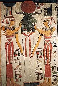 The Mysteries of Osiris, also known as Osirism,[1] were religious festivities celebrated in ancient Egypt to commemorate the murder and regeneration of Osiris. The course of the ceremonies is attested by various written sources, but the most important document is the Ritual of the Mysteries of Osiris in the Month of Khoiak, a compilation of Middle Kingdom texts engraved during the Ptolemaic period in an upper chapel of the Temple of Dendera. In Egyptian religion, the sacred and the secret are intimately linked. As a result, ritual practices were beyond the reach of the uninitiated, as they were reserved for the priests, the only ones authorised to enter the divine sanctuaries. The most unfathomable theological mystery, the most solemnly precautionary, is the remains of Osiris. According to the Osirian myth, this mummy is kept deep in the Duat, the subterranean world of the dead. Every night, during his nocturnal journey, Ra, the solar god, came there to regenerate by temporarily uniting with Osiris in the form of a single soul.