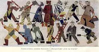 Mystery-Bouffe (Russian: Мистерия-Буфф; Misteriya-Buff) is a socialist dramatic play written by Vladimir Mayakovsky in 1918/1921. Mayakovsky stated in a preface to the 1921 edition that "in the future, all persons performing, presenting, reading or publishing Mystery-Bouffe should change the content, making it contemporary, immediate, up-to-the-minute."[1]
