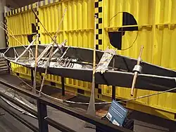 At the Port of San Francisco, the team put a boat in the water and began dumping ice into it. The boat only began to sink after more than 4,000 lb (1,814 kg) of ice had been added, more than the world record hail-fall of 4 ft (1.2 m) in a single afternoon. However, it then bobbed up to the surface due to buoyancy forces that allowed the ice to float free of the boat once it was underwater. The team decided to explore a third scenario, having a hailstone land in the boat while it was in the water. Grant set his cannon up to fire vertically downward into a floating boat, using the fiberglass and wood hulls. The fiberglass did not break at 300 mph (483 km/h), while the wood did puncture and take on water. A second test at 80 mph (129 km/h) did not puncture the wood, but a final shot at 150 mph (241 km/h) did. They classified the myth as plausible, noting the specific set of circumstances needed to sink a boat. |