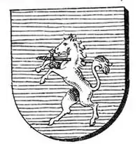 The coat-of-arms of the kindred (silver horse with sword pierced neck) is appeared in the 17th-century Siebmachers Wappenbuch. Based on this, the village Nána adopted a coat-of-arms in June 2003, designed by Slovak herold Ladislav Vrteľ.[18]