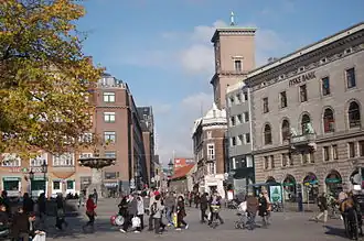 In the Middle Ages, Nørregade was the broadest street in Copenhagen.[1] Its name testifies to Gammeltorv's status as the centre of the city in that day. Copenhagen's second city hall was in the late 14th century built on the corner of Nørregade and Studiestræde. It was later used as the bishop's palace. The Northn City Gate was located at the northern end of the street until 1671 when it was moved to the end of newly established Frederiksborggade further to the west.