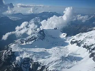![]() The Nüschenstock (centre left) with the ice covered Muttsee | |