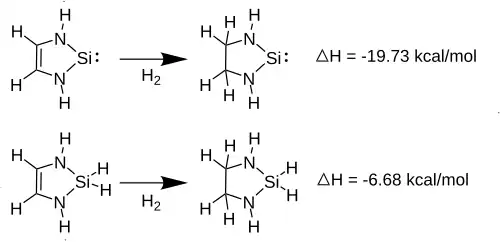 - ^ a b c d Denk, Michael; Green, Jennifer C.; Metzler, Nils; Wagner, Matthias (1994-01-01). "Electronic structure of a stable silylene: photoelectron spectra and theoretical calculations of Si(NRCHCHNR), Si(NRCH2CH2NR) and SiH2(NRCHCHNR)". Journal of the Chemical Society, Dalton Transactions (16): 2405. doi:10.1039/dt9940002405. ISSN 0300-9246.