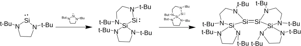 - ^ Schmedake, Thomas A.; Haaf, Michael; Apeloig, Yitzhak; Müller, Thomas; Bukalov, Sergey; West, Robert (1999-10-01). "Reversible Transformation between a Diaminosilylene and a Novel Disilene". Journal of the American Chemical Society. 121 (40): 9479–9480. doi:10.1021/ja992150j. ISSN 0002-7863.