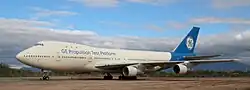General Electric Aircraft Engines (GE) purchased the aircraft after Pan Am's bankruptcy to serve as an airborne laboratory, specifically for testing jet engines from GE and its joint venture partners.[1] The aircraft received several modifications, including removing seats, strengthening the left wing and tail for flight testing and installing data systems.[3] Although intended for testing GE-developed engines, the aircraft was not fitted with General Electric CF6 engines and instead retained its original Pratt & Whitney JT9D engines. According to the company, no economically viable GE-powered 747s were available for purchase at the time.[1]