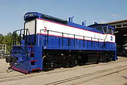 The NASA Railroad formerly operated three SW1500 switcher locomotives, each former Toledo, Peoria and Western Railway units, as well as 75 railroad cars.[7] The fleet was maintained by the NASA Railroad shop, which also maintained locomotives and railcars for the Cape Canaveral Space Force Station.[1][8] Upon the railroad's reopening in 2020, several industrial railcar movers were purchased by NASA and currently serve as the railroad's only form of motive power.[9]