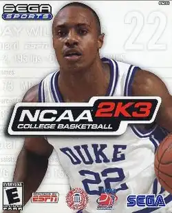 NCAA College Basketball 2K3 is an American college basketball video game released by Sega in December 2002 for the Xbox, PlayStation 2, and GameCube. It is the only game in the series that uses the "College Basketball" designation rather than "College Hoops". Former Duke Blue Devils guard Jay Williams is on the cover. NCAA College Basketball 2K3 is the only game in the series to appear on the GameCube.