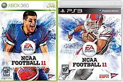 NCAA Football 11 is a college football video game created by EA Sports and developed by EA Tiburon. It is the successor to NCAA Football 10 in the NCAA Football series. It was released on July 13, 2010 for the PlayStation 2 (PS2), PlayStation 3, Xbox 360. A handheld version was released for iOS on June 24, 2010. It is the last version of NCAA Football to be made for the PS2.