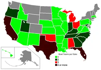 Along with the increase in bowl games, the NCAA ruled that teams could schedule twelve regular-season games (up from eleven) beginning in the 2006 season.[1] NCAA teams in Alaska and Hawaii, and their home opponents, are allowed to schedule an extra game over and above this limit. Two teams in any conferences with a championship final could play a 13th game in that conference championship [the Atlantic Coast Conference (ACC), Big 12 Conference, Conference USA (C-USA), Mid-American Conference (MAC), and Southeastern Conference (SEC)]. The increase in bowl games and season schedule resulted in the NCAA deciding to allow teams with a 6–6 record to be bowl eligible if either the team or their conference has negotiated a bowl contract.