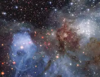 NGC 1935 (also known as ESO 56-EN110 and IC 2126) is an emission nebula which is part of the larger LMC-N44 nebula in the Dorado constellation. NGC 1935 is also located in the Large Magellanic Cloud. It was discovered by John Herschel in 1834 and added to the Catalogue of Nebulae and Clusters of Stars as NGC 1935, then was observed by Williamina Fleming in 1901 and later added to the Index Catalogue as IC 2126.[3]
