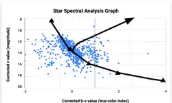A color–magnitude diagram (CMD) and Hertzsprung–Russell (H–R) diagram revealed that most stars lie along the main sequence, confirming that they are in the hydrogen-fusion stage. A clear turnoff point near spectral type B–A indicated where the more massive stars are beginning to evolve off the main sequence. Comparison with zero-age main sequence (ZAMS) models yielded a cluster age of approximately 30 million years.