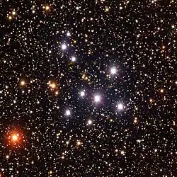 NGC 3228 is an open cluster in Vela. It was discovered by Nicolas Louis de Lacaille in 1751–1752,[3] while he was in South Africa and catalogued it as Lac II.7.[4] It is small but bright and can be observed easily with binoculars in sufficiently dark skies.[5]