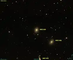 NGC 430 is an elliptical galaxy of type E: located in the constellation Cetus. It was discovered on October 1, 1785 by William Herschel. It was described by Dreyer as "faint, very small, round, very suddenly brighter middle similar to star."[2]