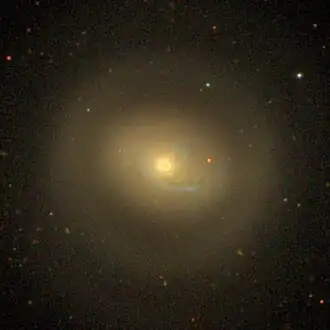 NGC 4457 is an intermediate spiral galaxy located about 55 million light-years away[2] in the constellation of Virgo.[3] It is also classified as a LINER galaxy, a class of active galaxy defined by their spectral line emissions.[4][2] NGC 4457 Is inclined by about 33°.[5] It was discovered by astronomer William Herschel on February 23, 1784.[6] Despite being listed in the Virgo Cluster Catalog as VCC 1145,[7] NGC 4457 is a member of the Virgo II Groups[8][9][10] which form an extension of the Virgo cluster.[8][11]