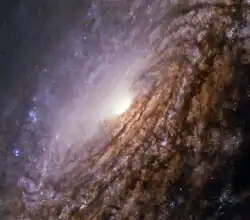 NGC 5033 contains a Seyfert nucleus, a type of active galactic nucleus.[13] Like many other active galactic nuclei, this galaxy's nucleus is thought to contain a supermassive black hole. The bright emission seen in visible light (as well as other wavebands) is partially produced by the hot gas in the environment around this black hole.