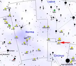 NGC 5823 (also known as Caldwell 88) is an open cluster in the southern constellation of Circinus, near (and extending across) its border with the constellation Lupus. It was discovered by Scottish astronomer James Dunlop in 1826.