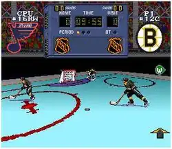 NHL Stanley Cup, known as Super Hockey in Europe,[2] is an ice hockey video game developed by Sculptured Software for the Super NES. Unlike most hockey video games of the time, the game features movement in a pseudo-3D environment using the SNES's Mode 7 hardware feature, similar to Sculptured's previous NCAA Basketball.