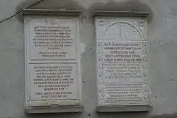 Plaques at Zolochiv Castle commemorating victims of the massacre | |