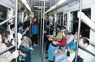 A NM-02 trainset has nine cars which are interconnected, allowing passengers to change from one car to another. Also, the units have a sound system that gives safety announcements to the passengers as well as a voice recording that announces the station the train is in and the next station. This was the first model to have this features to be used in Mexico City Metro system.[2]
