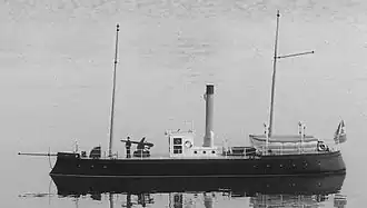 Fulgerul was built at La Seyne-sur-Mer near Toulon, France, by Forges et Chantiers de la Mediterranée at a cost of 130,000 lei.[1] She was launched and completed in 1873. Her displacement amounted to 85 tons.[2] She was armed with one gun and her power plant generated an output of 25 hp.[3] Fulgerul measured 82 feet (25 meters) in length, with a beam of 15 feet (4.6 meters) and a draught of 4 feet (1.2 meters).[4] The gunboat was also armored, her gun being a Krupp weapon with the caliber of 87 mm.[5][6] This was initially installed in a turret, but that was found to be unsatisfactory and was removed.[1] She was powered by a steam engine, her top speed amounting to 7 knots.[7] Her bow and aft both ended in iron rams.[8]