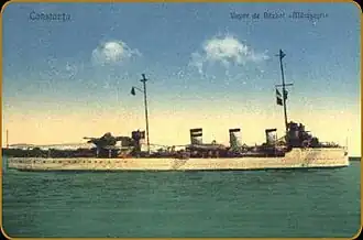 NMS Mărășești was one of four Vifor-class destroyers ordered by Romania shortly before the beginning of the First World War from Italy. All four sister ships were requisitioned when Italy joined the war in 1915. Originally named Vârtej by the Romanians, she was renamed Nibbio and classified as a scout cruiser in Italian service. Not completed until mid-1918, the ship took part in the Adriatic campaign of World War I but engaged Austro-Hungarian Navy ships in the Adriatic Sea only once before the war ended in November 1918. She was renamed Mărășești when she was re-purchased by the Romanians in 1920.