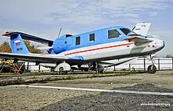 The NPO Molniya Molniya-1 is a three surface design with single pusher propeller and twin tail booms. In the late 1990s, the company proposed a number of larger types based on the three surface configuration.[2][3]