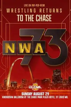 On the June 8, 2021, episode of NWA Power, National Wrestling Alliance (NWA) president Billy Corgan announced a four-day block of NWA programming from Saturday, August 28 to Tuesday, August 31 that would emanate from the Khorassan Ballroom of the Chase Park Plaza in St. Louis, Missouri, marking the first event that the NWA has held outside of the state of Georgia since the 2019 Crockett Cup. The block consisted of two pay-per-view (PPV) events, which were broadcast exclusively on FITE TV, and two Power tapings. NWA 73 was announced as the Sunday PPV, celebrating the 73rd anniversary of the National Wrestling Alliance.[1][2] On August 28, the NWA released a video package on their YouTube page that would be used for the cold opening of the PPV event, celebrating the history of wrestling at The Chase, with narration provided by actor John Goodman.[3]
