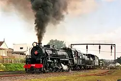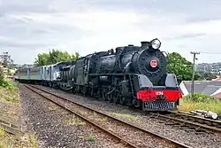 The NZR J class was a class of forty 4-8-2 steam locomotives operated by the New Zealand Railways Department (NZR). Although designed to work on the lighter secondary lines, the class was frequently used on mainline express passenger trains as well as freight.[2] When first introduced, the class boasted distinctive streamlining, which was later removed from 1947 onwards for maintenance reasons.[2] Three of this class remained in service until the end of steam operation on 26 October 1971, when they were withdrawn and entered into preservation. This class should not be confused with the earlier J class from 1874.
