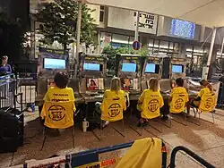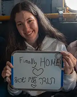 - ^ Translation of banner: Top row:Naama, we are waiting for you at home. Bottom row: Also wishing for the return of all the hostages.