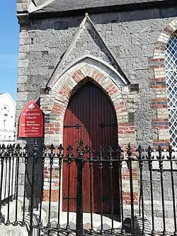 The church was built in 1868 on the site of the former tholsel, John La Touche of Harristown laying the foundation stone.[5] Rose La Touche worshipped there in 1872.[6]