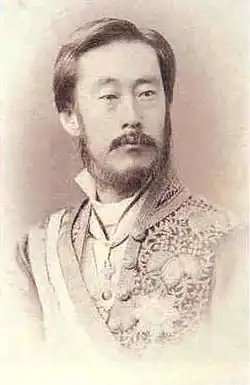 Nabeshima Naohiro or Nabeshima Chokudai[1] (鍋島 直大; October 17, 1846 – June 19, 1921) was the 11th and final daimyō of Saga Domain in Hizen Province, Kyūshū, Japan. Before the Meiji Restoration, his name was Nabeshima Mochizuru (鍋島 茂実) and his honorary title was Hizen-no-Kami.[1]