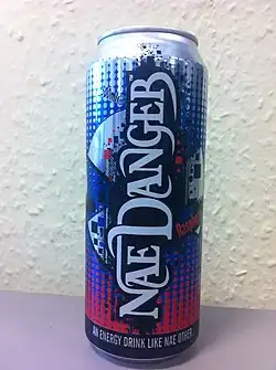 Nae Danger is an energy drink from Scotland. It is claimed to be the first and only carbonated energy drink to have been created, branded and manufactured in Scotland, which is contested with IrnBru32 which was released in 2006 by A.G. Barr.[1] Released in August 2012, the drink is a creation of Ross Gourlay, a Scottish entrepreneur from Bishopbriggs. Gourlay hoped to gain a slice of the growing caffeinated drinks market and also encourage recognisable Scottish brands within the UK. There are two main flavours: Blue Raspberry and Red Blueberry.[2]
